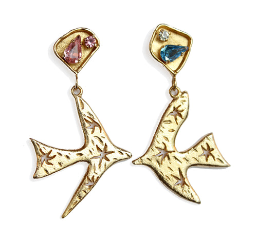 Wearable art inspired jewelry jewellery design eclectic creative statement gold-plated earrings statement earrings contemporary artistic artlover bijoux crystals one of kind designs Swarovski unique jewelry